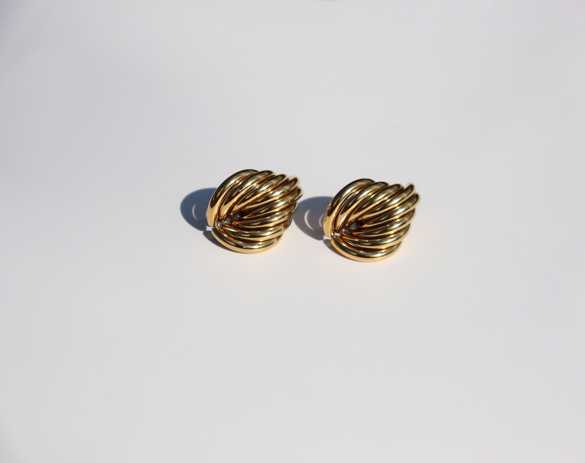 A modern twist on nature-inspired design. These gold leaf-form earrings feature smooth, interwoven curves that create a delicate, dimensional silhouette. Their polished finish reflects light with every movement, making them an effortless statement for any occasion.